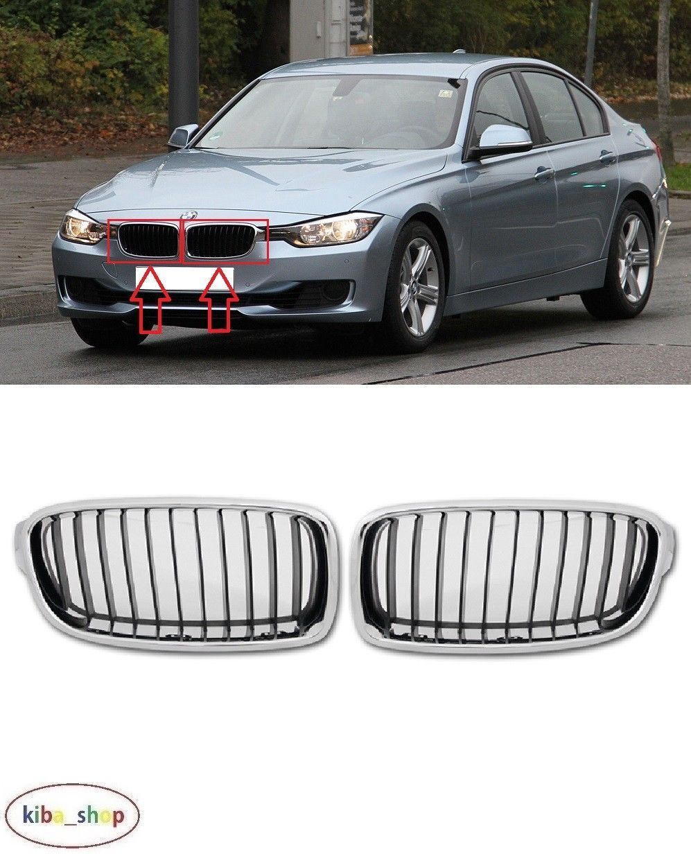 BMW 3 - SERIES (F30/F31) 2012 - 2016 NEW FRONT BUMPER UPPER RADIATORGRILL GRILLES CHROME + BLACK LEFT + RIGHT HIGH QUALITY FITS FOR:BMW 3 - SERIES 2012 - 2016...